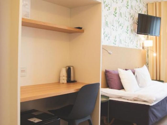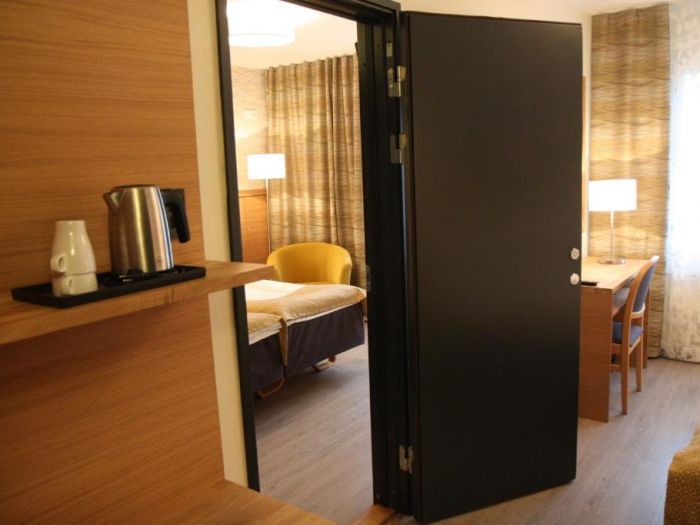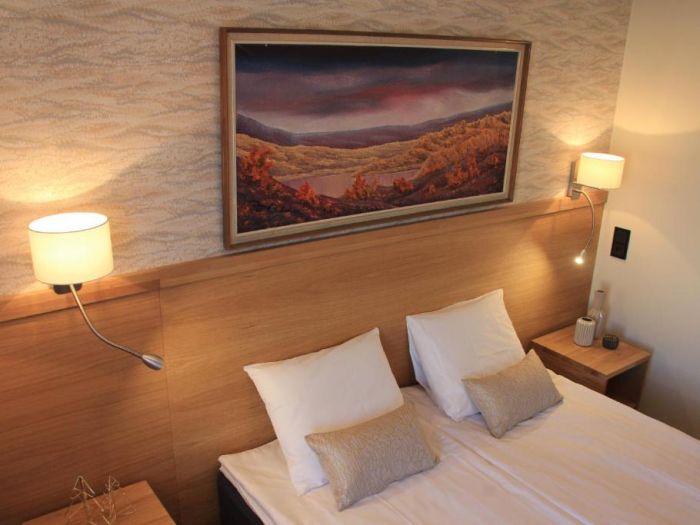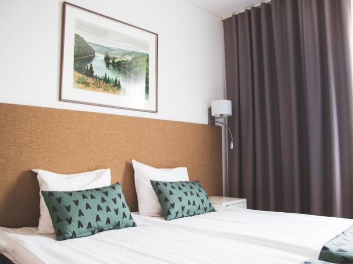 Хотелска базаХотелът с удоволствие посреща почиващите в общо 45 стаи. Удобства като, съхранение на багаж и сейф, допринасят за един комфортен престой. Чрез безжичен интернет в общите части (без допълнително заплащане) гостите имат постоянна връзка с глобалната мрежа. Изборът от заведения за хранене включва ресторант, зала за хранене и бар. Всичко това се допълва от градина. Към допълнителните удобства на хотела се числи сепаре с телевизор. Пристигналите с автомобил могат да ползват паркинга на хотелската база (без допълнително заплащане). Към екстрите, които са на разположение на гостите, спадат трансфер и пералня. Желаещите да разгледат съседните околности ще оценят възможността за наемане на велосипеди. Презентации, лекции или срещи могат да се проведат във всяка една от 2-те конферентни зали.НастаняванеВ стаите има всекидневна, кухненски бокс и санитарен възел. Пълноценна нощувка в стаите осигурява разтегателен диван. Налични са отделни спални. Освен това има писалище. Предоставени са също хладилник, котлон, микровълнова фурна и машина за приготвяне на чай или кафе. Към допълнителните удобства спада комплект ютия с дъска за гладене. Оборудването включва още интернет достъп, телефон, телевизор и безжичен интернет. Могат да се резервират стаи, подходящи за хора с двигателни проблеми. Комфортът в санитарния възел се осигурява от душ. Като допълнително удобство има сешоар. За по-голям комфорт в санитарните възли се осигуряват козметични продукти. Възможно е да бъдат резервирани стаи със санитарни възли, пригодени за хора в инвалидни колички. Хотелът предлага стаи за непушачи.Спорт/забавленияВъзможност за гъвкаво планиране на свободното време предлагат офертите за спорт и забавления. Лятната тераса подканя към отмора и релакс. Многообразие осигуряват различни оферти за свободното време, сред които велосипеди, фитнес-студио и сауна. Copyright GIATA 2004 - 2023. Multilingual, powered by www.giata.com for client no. 128106ХраненеМоже да се резервира нощувка със закуска. Като опция може да се избере закуска.Кредитни картиВ хотела се приемат следните кредитни карти: American Express, Visa, Diners Club и MasterCard.