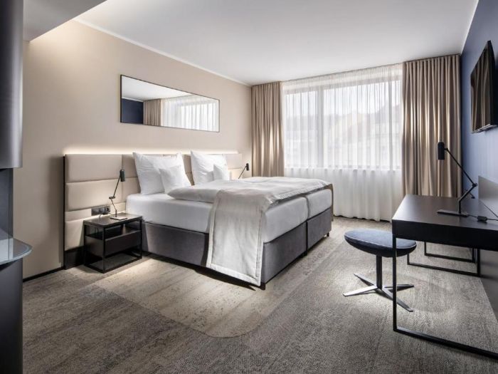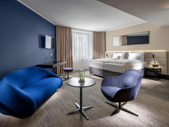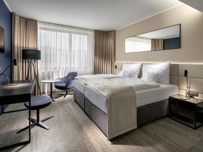 Стандартните стаи в хотела (21 кв.м) разполагат с климатик, телевизор, телефон, сейф, сешоар, сет за чай и кафе, wi-fi.
