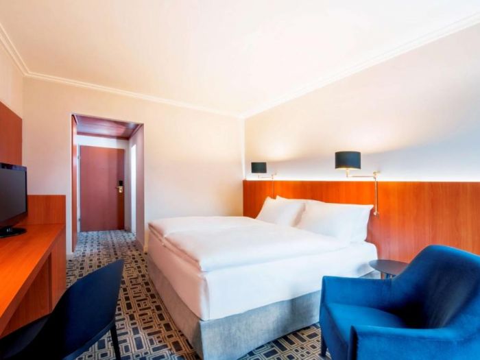 NH Hotel Prague City 4* се намира в Прага 5, на 650 метра от метростанция "Andel" , чрез която се достига до центъра на Прага само за 8 минути. Около хотела има разнообразие от магазини, ресторанти, пивници и барове. На 1 км от хотела се намира и пивоварна 'Staropramen' .
