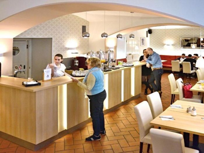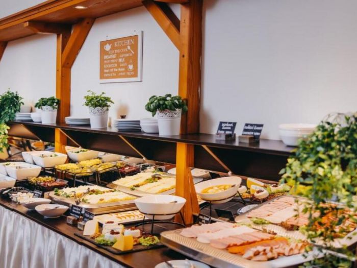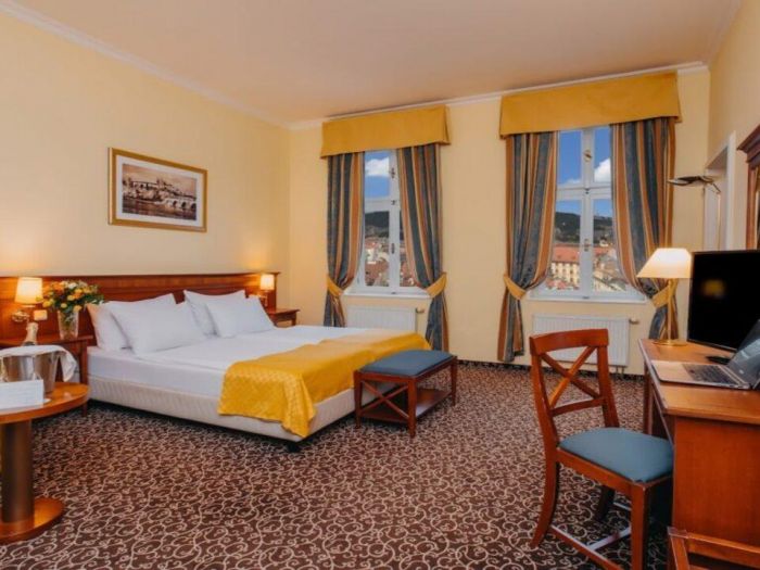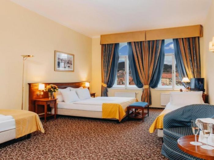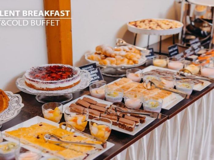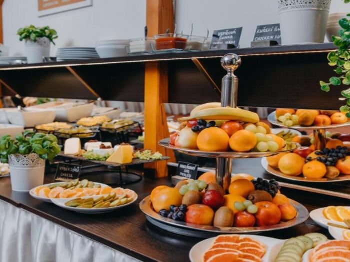 Ресторантът на хотела сервира изобилна закуска на шведска маса всяка сутрин, включваща както топли и студени ястия, така и традиционни чешки печива и напитки.