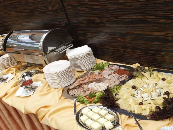 Закуската сервира се в часовете между 07:00 и 10:00 в ресторанта на хотела. През уикенда закуската е с удължено времетраене от 07:00 до 11:00ч. На закуска се предлага разнообразие от шунка, различни видове салам и наденици, сирене, сладки и солени печива, яйца, плодове и зеленчуци, зърнени закуски, млечни продукти, плодови сладка и топли и студени напитки. В случай че гостите ще отпътуват в по-ранен час, закуската им може да бъде пакетирана за из път.