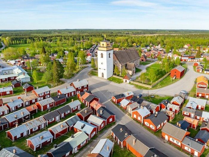 Магията на зимата обгръща всичко – покривите, камбанарията на величествената църква, малките прозорци, зад които някога са светели свещи. Ще усетите пулса на старите времена, ще се потопите в атмосферата на общност, събирала се тук за празници и духовни тържества, и ще почувствате как всяка крачка ви свързва с духа на Северна Швеция.