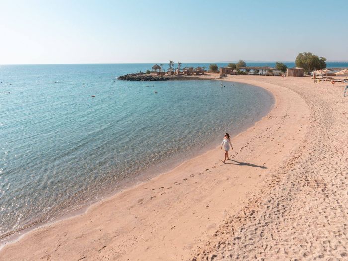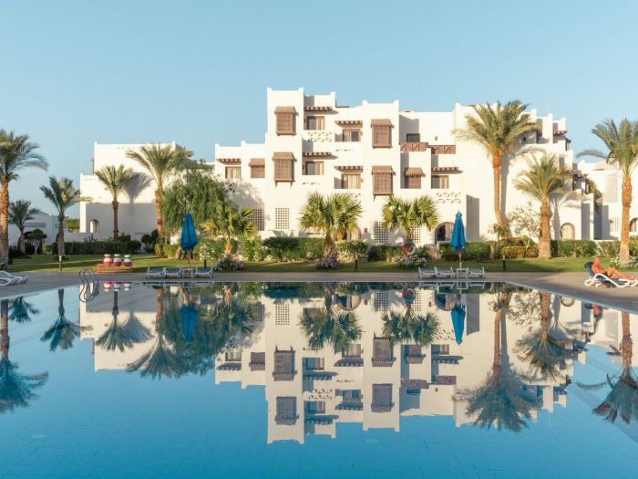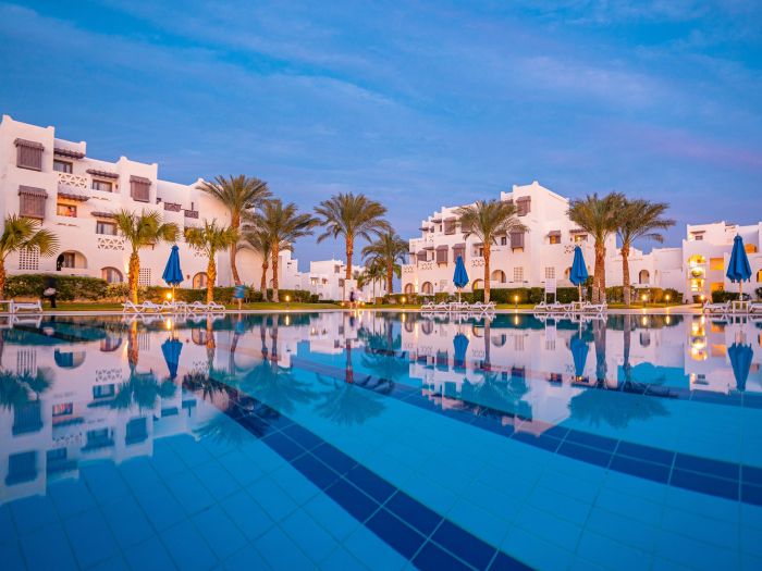 Намира се на 8 км. от летище Хургада, на 12 км. от центъра на Хургада, на брега на морето.
