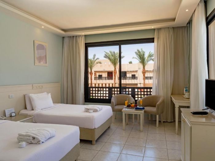 Намира се на 17 км. от летище Хургада, на 23 км. от центъра на Хургада, на брега на морето.