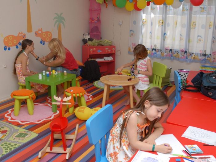 За децата: детски басейн, 2 водни пързалки, детска площадка.