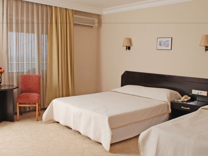 Хотелът разполага общо със 180 стандартни стаи. Всички стаи са оборудвани с климатик, телевизор, телефон, баня с душ/вана, сешоар, сейф (платен), балкон. Почистване на стаите- всеки ден.