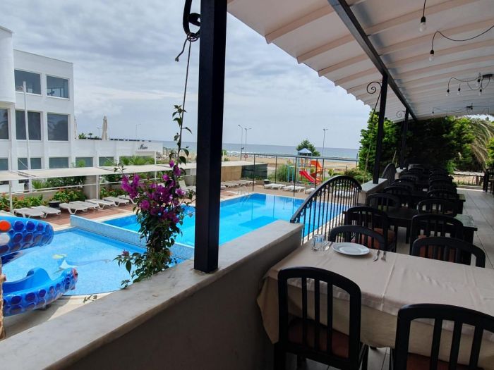 ПЛАЖ: Собствен, пясъчен – чадъри и шезлонги на плажа и при басейна – безплатно.