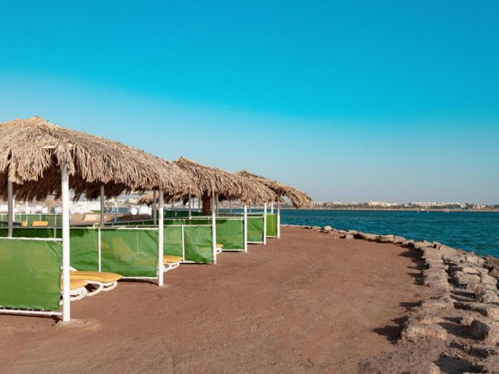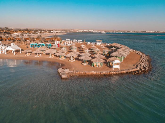 Намира се на 30 км. от летище Хургада, на 40 км. от центъра на Хургада, в района на Макади бей, на 800 м. от брега на морето.