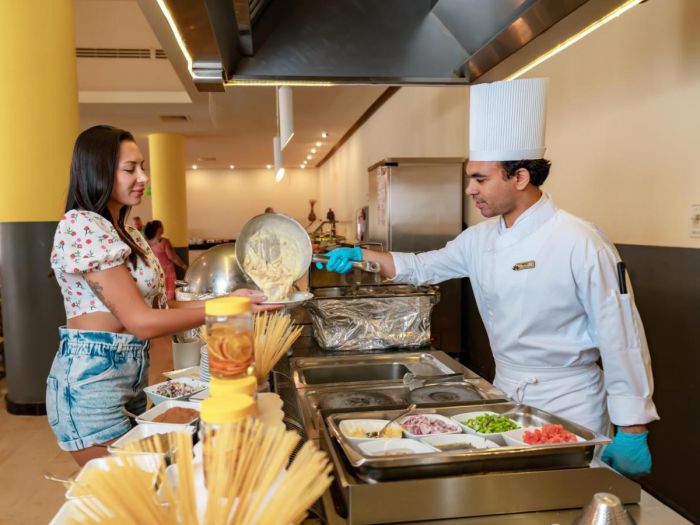 Основен ресторант, 3 а - ла - карт ресторанта (гръцки, латиноамерикански, азиатски), 3 бара, сладоледена къща, снек бар, 2 басейна (1 отопляем през зимния сезон), СПА център, магазини. Безплатни услуги: тенис на маса, водно поло, водна гимнастика, аеробика, гимнастика, боча, дартс, плажен волейбол, жива музика, анимация. Платени услуги: сауна, парна баня, турска баня, джакузи, фитнес, масаж, салон за красота, тенис на корт, тенис на маса, салон за красота, моторни водни спортове, безмоторни водни спортове, дайвинг, уиндсърфинг, сърфинг, шнорхелинг.