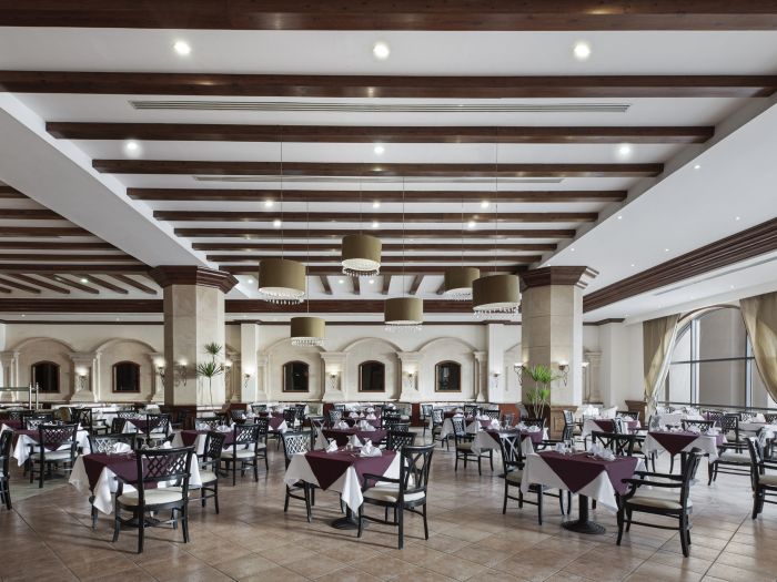 5 бара, 2 открити басейна (1 отопляем), аква парк, СПА център, магазини, 7 конферентни зали, паркинг.