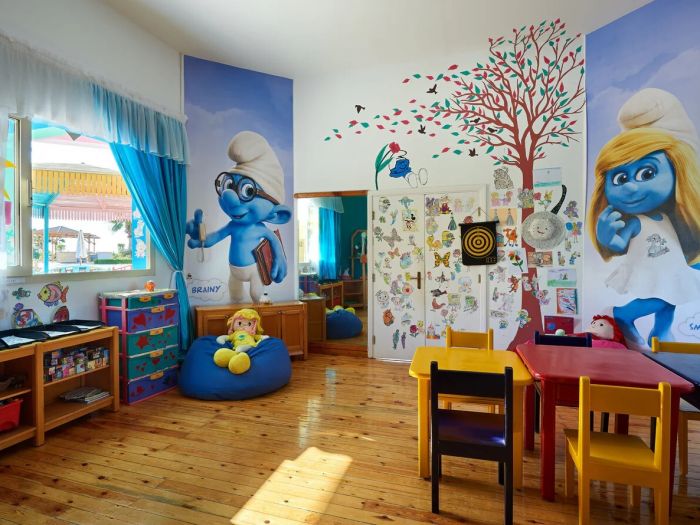 За децата: детско меню, детски басейн, детска площадка, мини клуб (4-12 г.), бебешка кошара (безплатно, след предварителна заявка, според наличността), детски столчета в ресторантите.