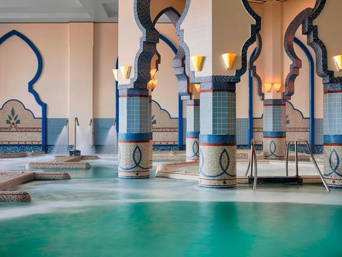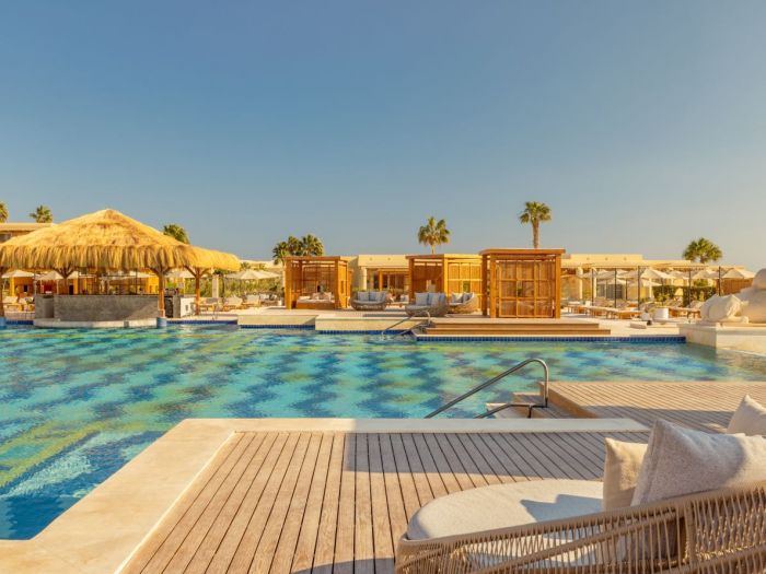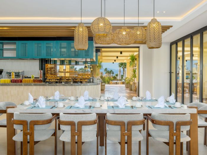Основен ресторант, 1 а-ла-карт ресторант (рибен – с предварителна резервация, съгласно концепцията на хотела), 2 бара, 2 открити басейна, аквапарк, СПА център, 9 конферентни зали, магазини.
