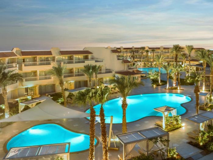 Намира се на 6 км. от летище Хургада, на 15 минути с кола от центъра на Хургада, на брега на морето.