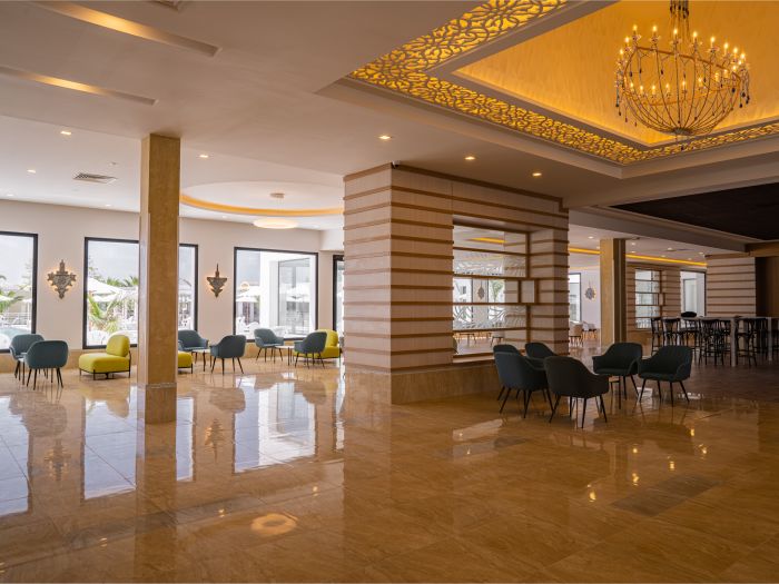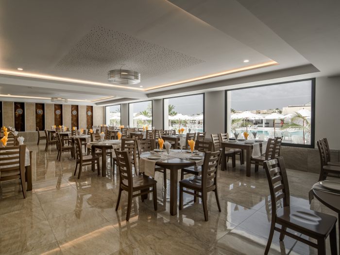Основен ресторант Citrus, а ла карт ресторант на плажа платен, барбекю Palma до басейна от 01.07 до 31.08 с включен и нощен снакс, лоби бар, бар на басейна, плажен бар, снек бар, бар до аква парка (01.05-31.10), ресторант а ла карт Aloe Beach (01.07-31.08, срещу заплащане), открит басейн, воден парк в съседния хотел Club Novostar Omar Khayam (01.05 – 31.10), отопляем закрит басейн (отворен 30.09 - 01.06), дневна и вечерна анимация за деца и възрастни, диско и вечерни шоута, обмяна на валута, 24 часова рецепция, магазини, СПА център.