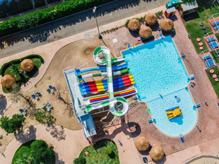 За децата: басейн, водни пързалки, мини клуб (4-12 г.), детски кът в основния ресторант.