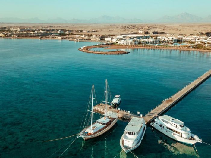 Намира се на 18 км. от летище Хургада, на 22 км. от центъра на Хургада, на брега на морето.