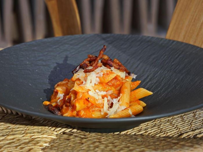 Ресторант Zeffirino - италианска кухня ; Тратория Белони - италианска и гръцка кухня; Винен бар ; Бар на басейна с 80 шезлонга и 2 големи басейна.