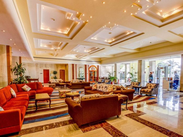 Хотелът разполага с общо 395 стаи, разположени в 6 сгради на 5, 3 и два етажа. Всички стаи са оборудвани с климатик, телевизор, телефон, баня с душ/вана, сешоар (по заявка на рецепция), минибар, сейф (безплатно на рецепция), балкон. Почистване на стаите и смяна на кърпи - всеки ден, смяна на спално бельо - 3 пъти седмично.