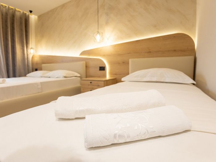 Хотелът се състои от основна и анекс сграда и разполага с 26 стаи, от които : 13 с изглед към морето и 13 с изглед към града. Всички стаи са оборудвани с климатик, телевизор, баня, минибар, балкон или тераса. Почистване на стаите - всеки ден.