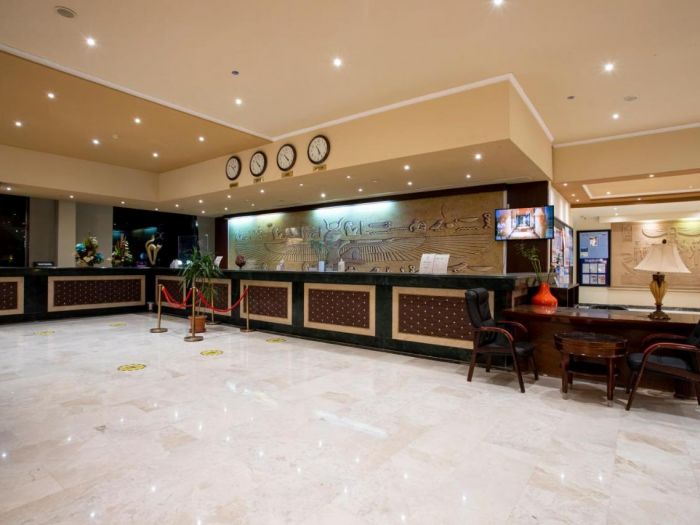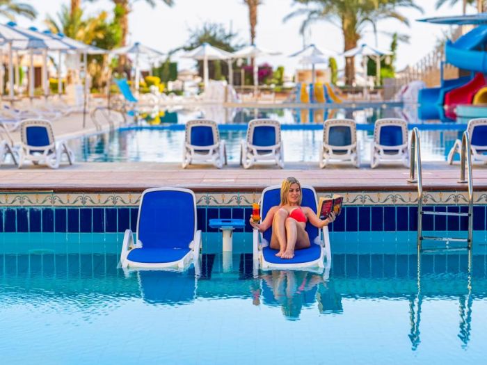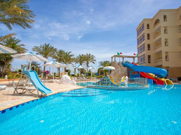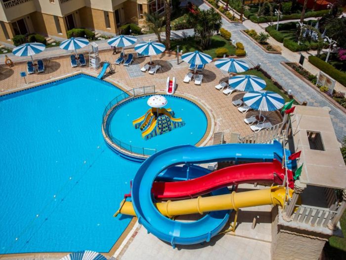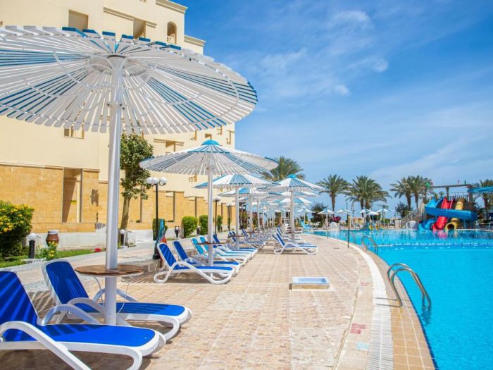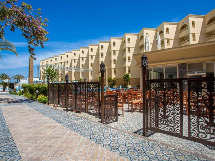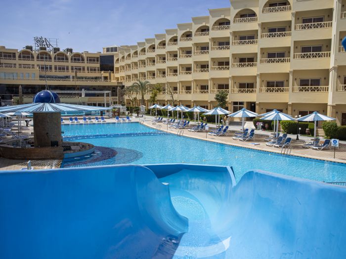 Намира се 17 км. от летище Хургада, на 11 км. от центъра на Хургада, на брега на морето. Построен през 2010 г. С обща площ 82.000 м2., последно реновиран през 2018 г.