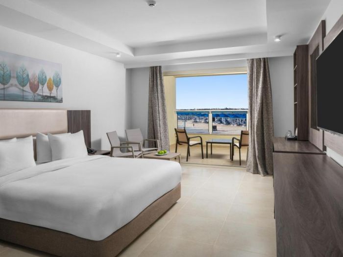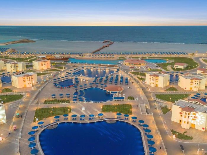 Намира се на 35 км. от летище Хургада, на 49 км. центъра на Хургада, на брега на морето.