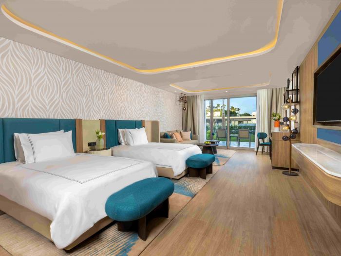 Всички стаи са оборудвани с климатик, телевизор, телефон, баня с душ или вана, сешоар, сет за чай/кафе, минибар (безплатен, зарежда се ежедневно), сейф (безплатен), халати и чехли, балкон или тераса. Почистване на стаите и смяна на кърпите – всеки ден, смяна на спалното бельо – няколко пъти седмично.