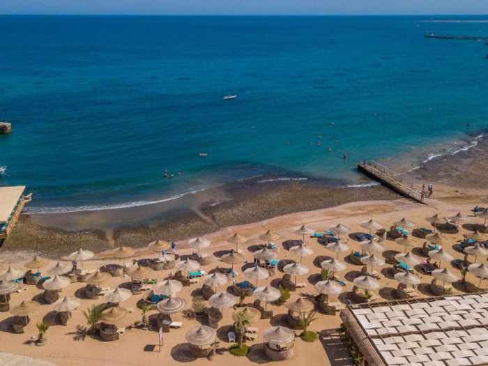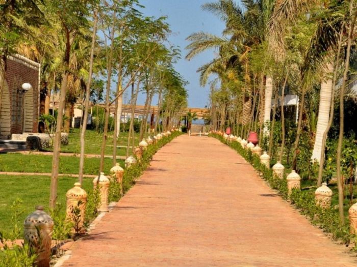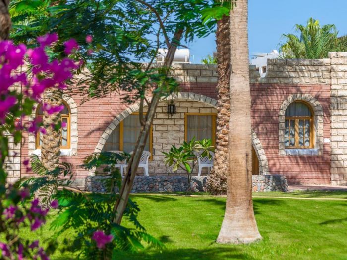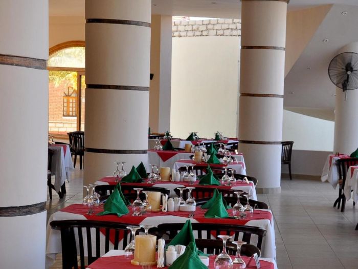 Намира се на 8 км. от летище Хургада, на 15 км. от центъра на Хургада, на брега на морето. Посторен през 1995г., всяка година частично се реновира.