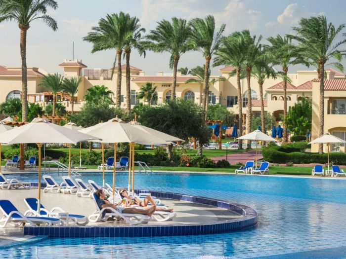 Намира се на 30 км. от летище Хургада, на 35 км. от яхтеното пристанище на Хургада, на брега на морето. Посторен през март 2016 г.