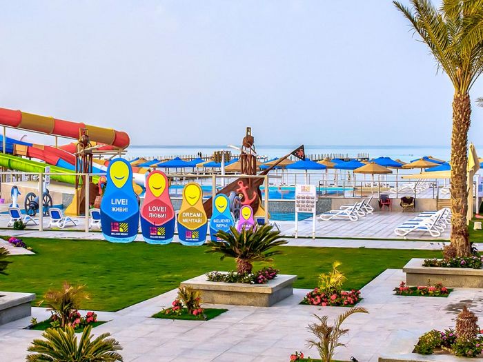 За децата: 2 детски басейна, 2 водни пързалки, мини клуб (3-12г.; не работи в ден Петък), мини диско, детска площадка, бебешка кошара (безплатно – срещу запитване).