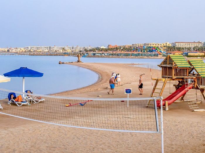 Намира се на 20 км. от летище Хургада, на 15 км. от центъра на Хургада, на брега на морето.