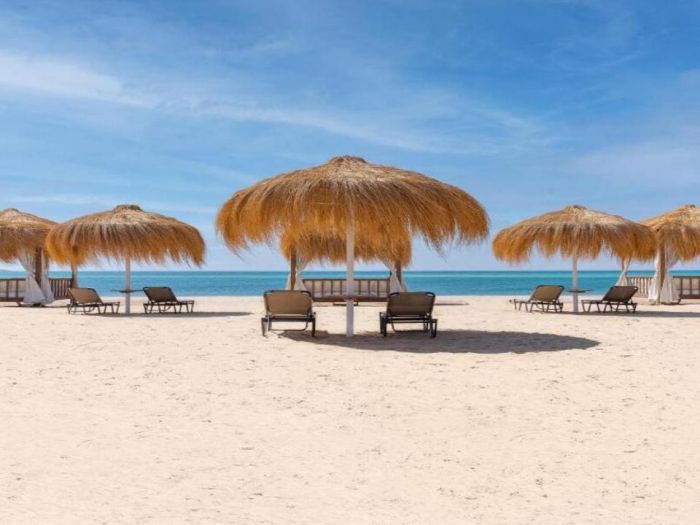 Собствен, пясъчен (Lagoon Beach). Чадъри, шезлонги и матраци на плажа и при басейна - безплатно. Плажни кърпи – безплатно.
