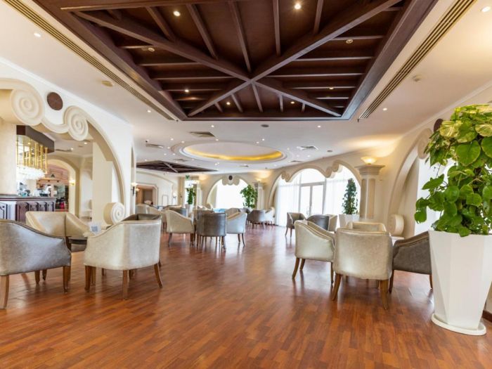 Основен ресторант Helidoro, 5 а ла карт ресторанта (арабски, мексикански, индийски, средиземноморски и морски - платен), 7 бара от които 3 на плажа, открит басейн (отопляем през зимата), аква парк с 3 водни пързалки, СПА център, конферетни зали, 24-часова рецепция, асансьор, банкомат, магазини.