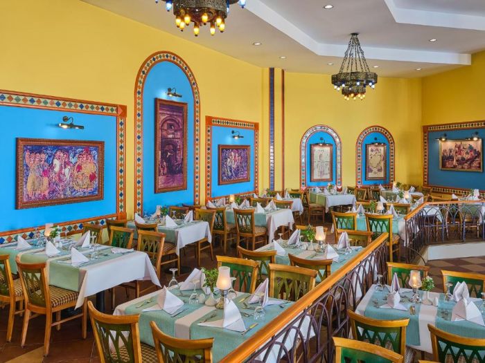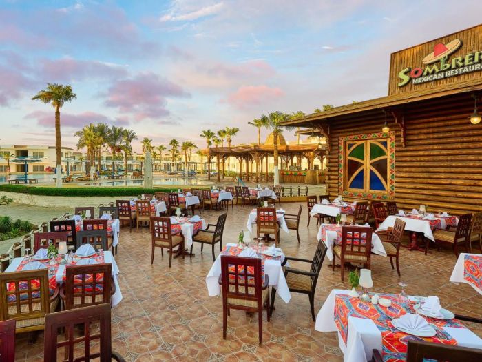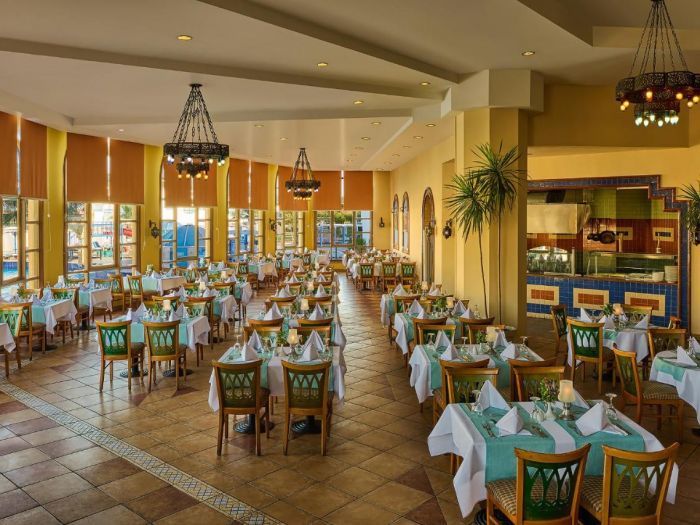 Основен ресторант, 3 а-ла-карт ресторанта (рибен, мексикански, барбекю –1 безплатно посещение на 1 от ресторантите при минимум 7 нощувки), 5 бара (1 от които 24 часа), 3 открити басейна, 5 водни пързалки, СПА център, магазини.