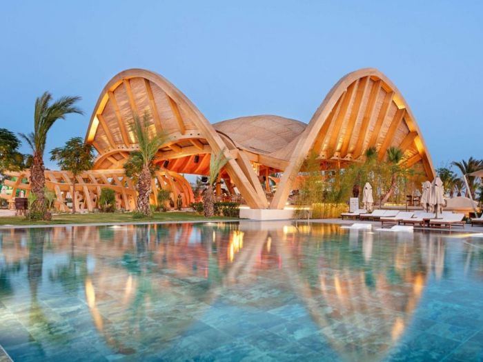 Хотелът е с красив средиземноморски интериор и архитектура, модерно и екологично проектирана, съобразно заобикалящата я природа, с мраморни детайли и декоративни селекции и с пейзаж, напомнящ райската градина.