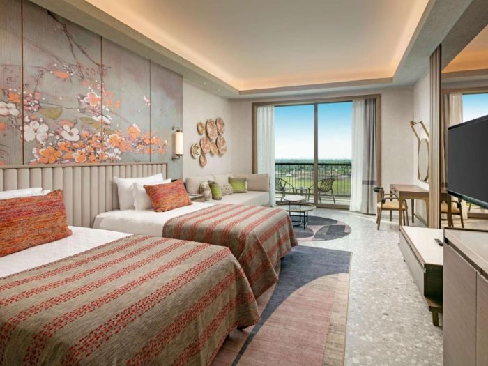 Хотелът разполага с 600 стаи, от които една част са разположени в основната сграда с гледка море, голф игрище или градина, която се състои от 8 етажа и 8 асансьора, отделно предлага стаи Lagoon и Вили. Всяка стая разполага с комфортни легла и матраци, климатик, сателитна телевизия с 49" HD LCD TV., телефон, баня с душ, премиум козметика Etro/ Bvlgari, козметично огледало, халат и чехли за СПА, сешоар, мини бар, сет за кафе и чай, сейф, балкон, wifi, меню с избор на възглавници, дигигателн ключ за осветление.