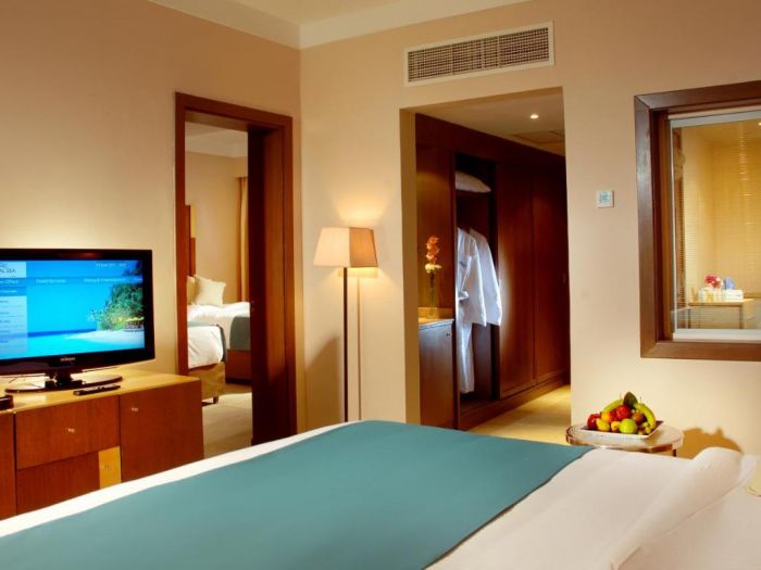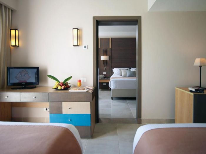 71 Standard room (32 м2), 76 Family room (1 спалня, 1 хол, 1 баня - 44 м2), 7 Hotel suite room (1 спалня, хол, 1 баня - 91 м2), 32 Swim Up room (42 м2) , 24 Family Superior, Kids Den room ( 2 спални, 1 баня - 54 м2).
