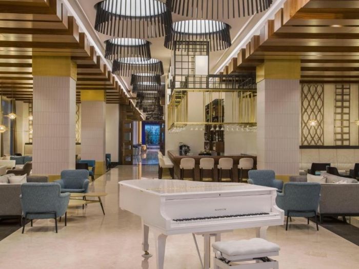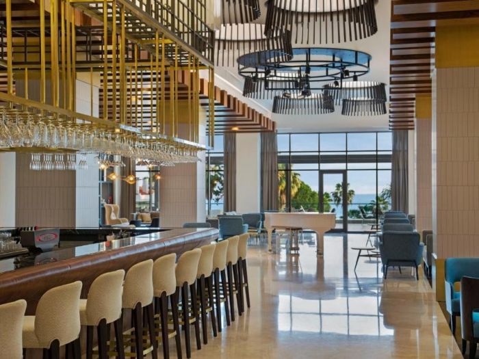 На територията на хотела: Основен ресторант (веганска и безглутенова храна, mobile free zones), 3 а-ла- карт ресторанта (международен, италиански, морски ресторант, по предварителна заявка - безплатно), 3 бара, сладкарница, 1 открит басейн, закрит басейн (отворен само през зимния период), СПА център, магазини, конферентна зала, лекарски кабинет, фризьорски салон, химическо чистене, пералня.