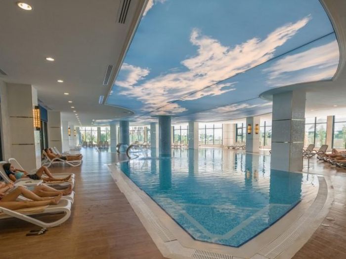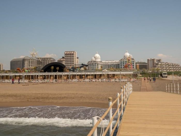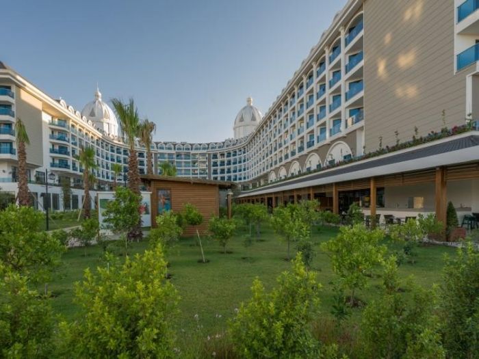 Разположение: Хотелът се намира на 10 км от летището в Анталия, на 15 км от центъра на гр. Анталия, на брега на морето. Открит е през 2016 г. върху територия с обща площ от 45 000 м2.