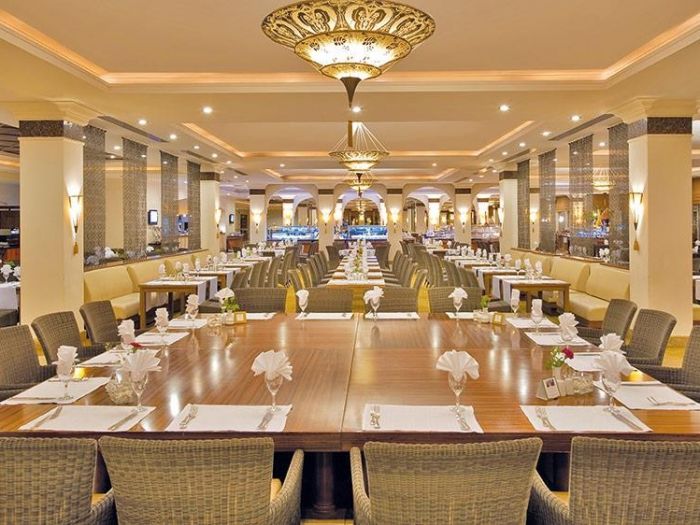 На територията на хотела: Хотелът предлага разнообразие от ресторанти и барове, включително основния ресторант с новата концепция My ChiefNplate, снек ресторант, сладкарница и магазин за сладолед, както и 5 а ла карт ресторанта, предлагащи турска, италианска, рибна, френска и регионална кухня. За любителите на кафето има Cafe Preto и SPA Vitamin Bar с топли напитки, билков чай, фрешове и вода. Хотелът разполага и с 5 бара, включително Cafe Turc с турско кафе и чай. За релакс и забавление на Ваше разположение са открит басейн с площ 2635 кв.м, аквапарк 1200 кв.м със 7 водни пързалки и вътрешен басейн 129 кв.м, който се отоплява в зависимост от метеорологичните условия. Пералня се предлага срещу заплащане, Wi-Fi е безплатен както в стаите, така и в целия хотел, а откритият паркинг и пазарът са безплатни.