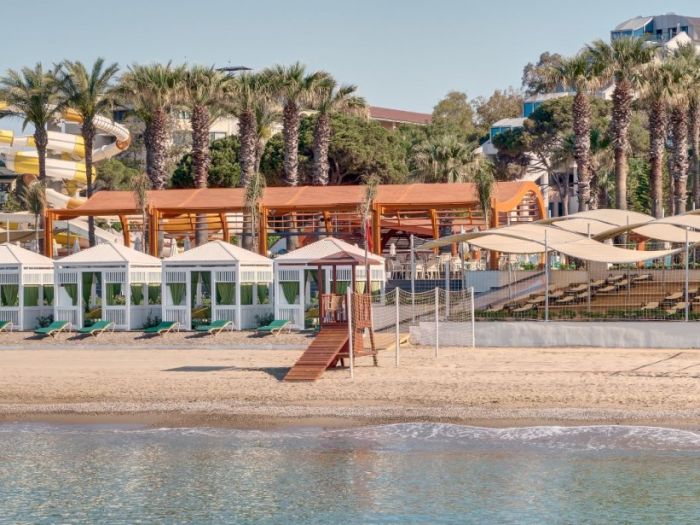 Плаж: Собствен, пясъчен, пред хотела. Има кей, бар на плажа: безплатно, с осигурени плажни кърпи, чадъри, шезлонги.
