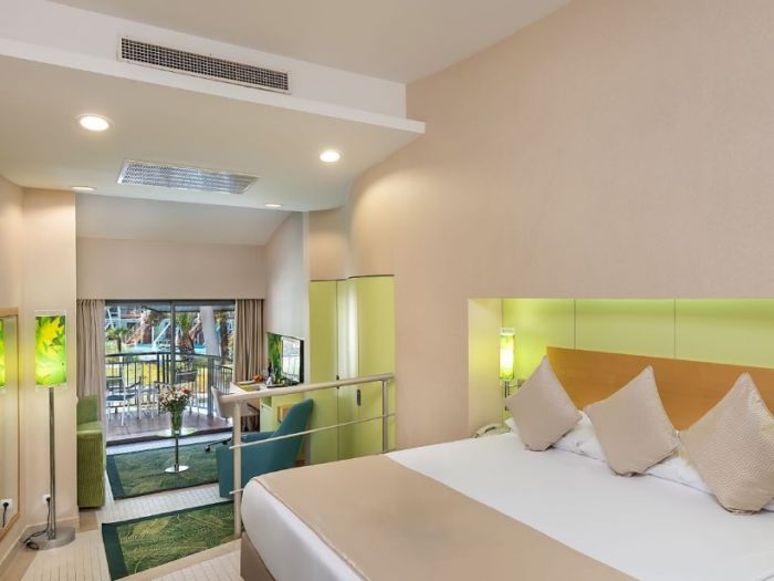 В стаите: Състои се от основна 5-етажна основна сграда Hotel (70% от стаите са с гредка море), 3-етажна сграда Villa Standard Garden Room с гледка към градината и стаи от категория Villa Junior Suit. Хотелът разполага с общо 358 стаи, които са оборудвани с централен климатик, телевизор, телефон, баня с вана или душ, халат и чехли, сет за кафе и чай, кошница с плодове: в деня на пристигане (и вино), сешоар, сейф 9безплатне), мини-бар безплатно (безалкохолни напитки и бира - ежедневно зареждане), Wi-Fi (безплатно), room service: платено (за обслужване; безплатно за Villa Junior Suite Deluxe Suite Grand Deluxe Suite от 22:00 до 07:00-плаща се поръчката; алкохолни напитки – 24 часа, платено), под - мокет (мокет (Villa Garden – ламинат или мокет, Villa Junior Suite – теракот). Почистване на стаите - ежедневно, смяна на спално бельо - 3 пъти седмично.