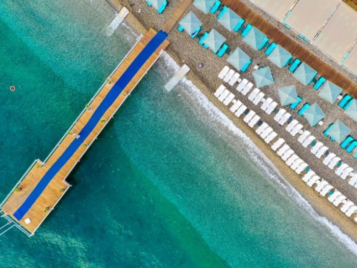 Плаж: Собствен, пясъчен плаж. Чадъри, шезлонги и матраци на плажа и при басейна – безплатно, плажни кърпи – срещу депозит.