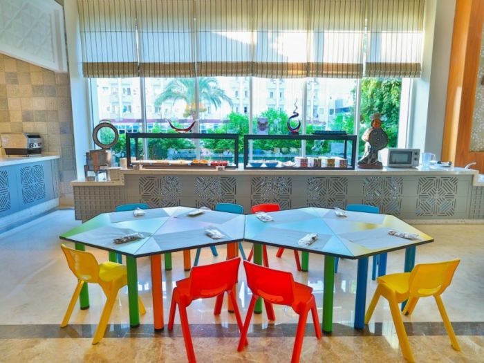 На територията на хотела: Основен ресторант, а - ла - карт ресторант (с предварителна резервация), 4 бара, 3 открити и 2 закрити басейна, водни пързалки, магазини, СПА център, дискотека, кино, конферентни зали, паркинг. За децата: Детска площадка, мини клуб (4-12 г.), 2 детски басейна – външен и вътрешен, водни пързалки, анимация.