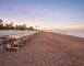 Собствен, пясъчен. Чадъри, шезлонги, матраци и плажни кърпи на плажа и при басейна - безплатно.