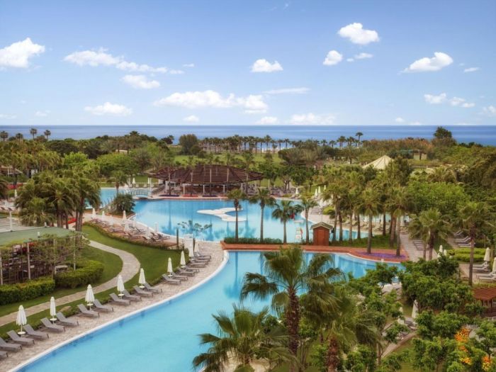 На територията на хотела: Основен ресторант, 8 а-ла-карт ресторанта (анталийски, средиземноморски, турски, барбекю, рибен, пицария, интернационален, суши бар - с предварителна резервация), 6 бара, сладкарница, 4 открити и 1 закрит басейн, СПА център, конферентна зала, паркинг.
