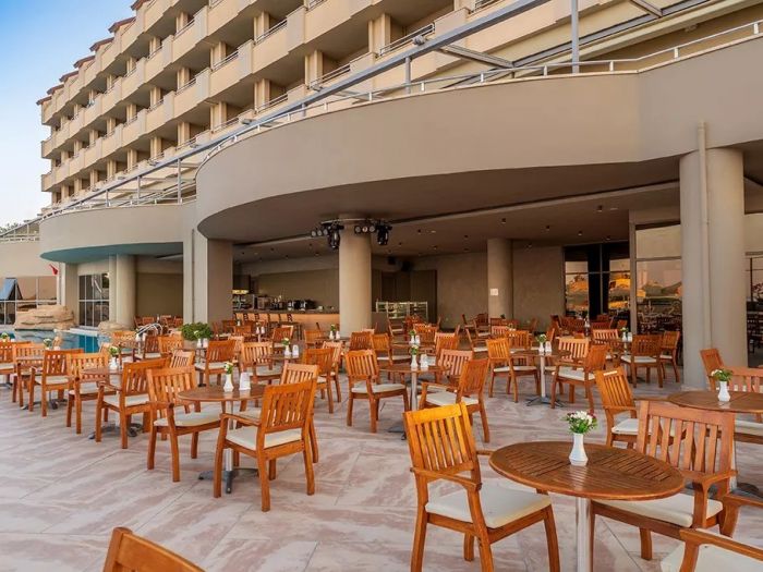Разположение: Хотелът е се намира на 65 км от междунардното летището в Анталия, на 2 км от Сиде, на 6 км от Манавгат, на брега на морето. Построен е през 2001 г., последно реновиран през 2021 г. и е разположен върху територия с обща площ от 70 000 м2.