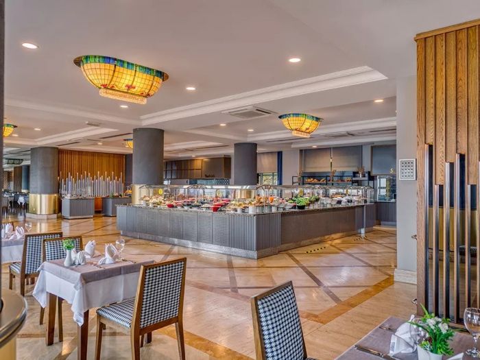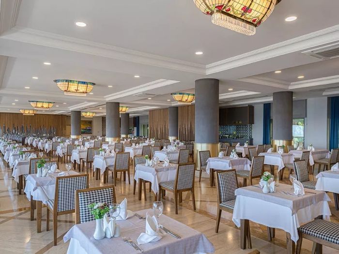 Изхранване: Ultra All Inclusive - закуска, обяд и вечеря на блок маса, допълнителни междинни хранения и неограничена консумация на местни алкохолни и безалкохолни напитки, някои вносни алкохолни напитки. Разполага и с различни ресторанти: Main Restaurant, A´la Carte Restaurants, Gozleme House, Patisserie.
