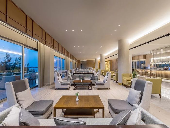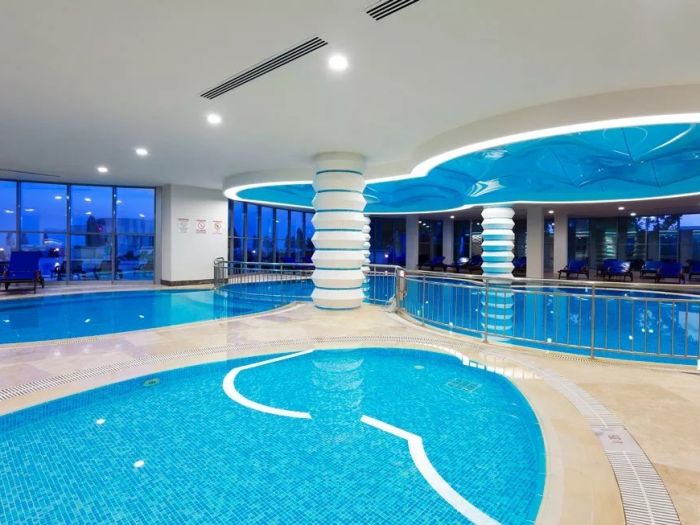 На територията на хотела: Основен ресторант, 3 ресторанта a-la-carte (турски, рибен, международен, с предварителна резервация, за едноседмичен престой едно безплатно посещение на един ресторант), 4 бара, дискотека, сладкарница, открит басейн, закрит басейн, дискотека (3 пъти в седмицата), лекарски кабинет, SPA център, фризьорски салон, 2 конферентни зали.