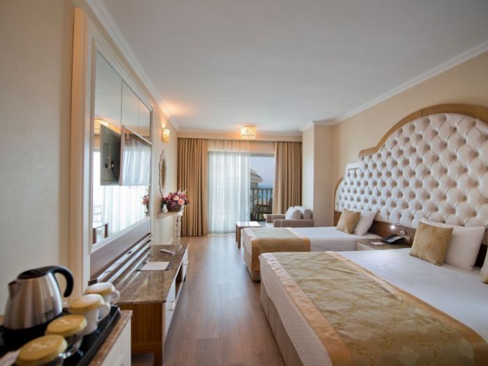 В стаите: Хотелът разполага с общо 496 стаи: economic room, standard room, family room, terrace room. Всички стаи са оборудвани с климатик, телевизор, телефон, баня с душ/вана, сешоар, мини-бар (безплатен), сейф (безплатен), Wi-Fi. Почистване на стаите и смяна на кърпите – всеки ден, смяна на спалното бельо – 3 пъти в седмицата.