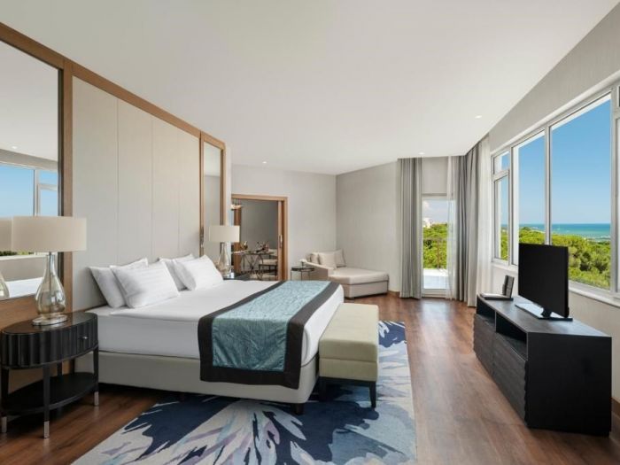 На територията на хотела: Основен ресторант, вегетарианско меню, 4 a-лa-карт ресторанта (средиземноморски, китайски, интернационален, турски – с предварително записване, за времето на престоя, едно посещение във всеки ресторант – безплатно), 7 бара (един от тях е отворен 24 часа), 2 открити басейна (2300 и 1400 кв.м.), 2 закрити басейна, водни пързалки, анимация, амфитеатър, кино, жива музика, дискотека (безплатно)